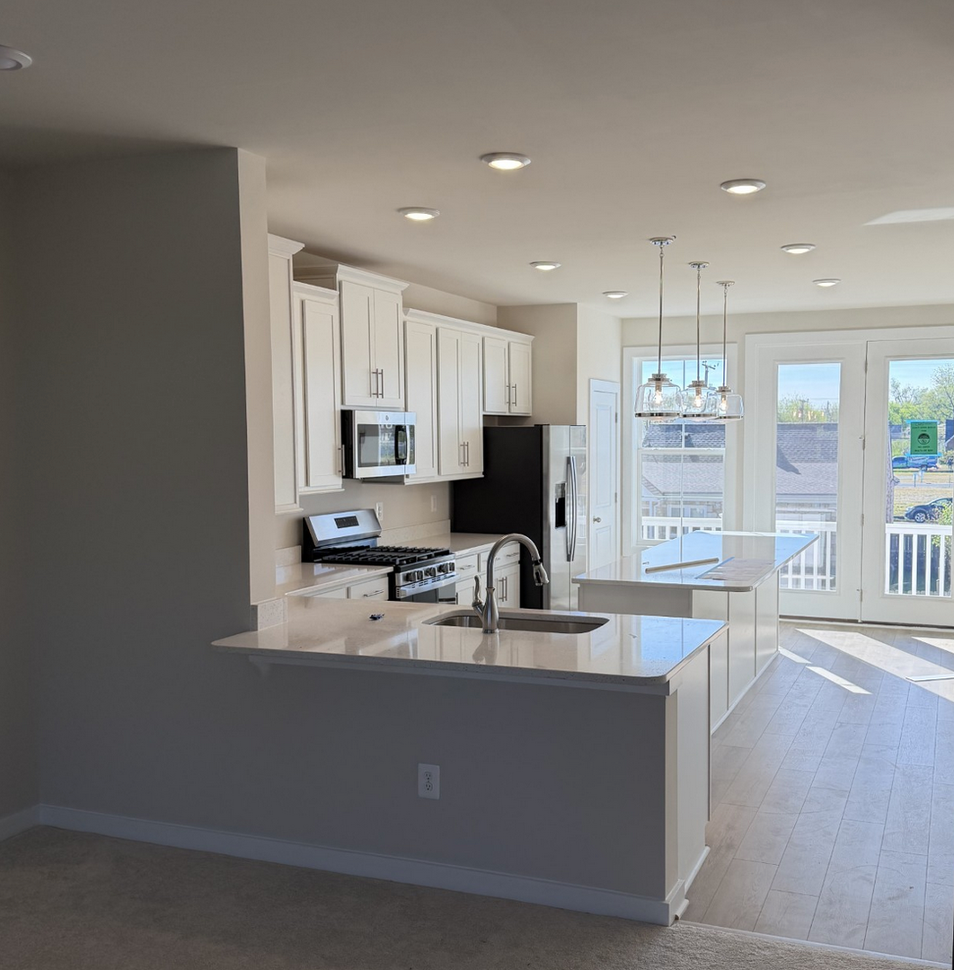 Step inside the lower level, where a welcoming recreation room greets you from either the front entry or the rear two-car garage. On the main level, this unit shines with an open-concept design. The spacious family room provides plenty of room for relaxation and entertaining. The adjacent kitchen is the true centerpiece, featuring a large island, ample counter space, and a dedicated dining space. Extend your living space outdoors with a modest rear deck—perfect for morning coffee. Upstairs, this unit continues to impress with three bedrooms, two full bathrooms, and convenient bedroom-level laundry. Two secondary bedrooms share a hall bath, while the private primary suite offers a walk-in closet and a luxurious bathroom complete with dual sinks and a walk-in shower.